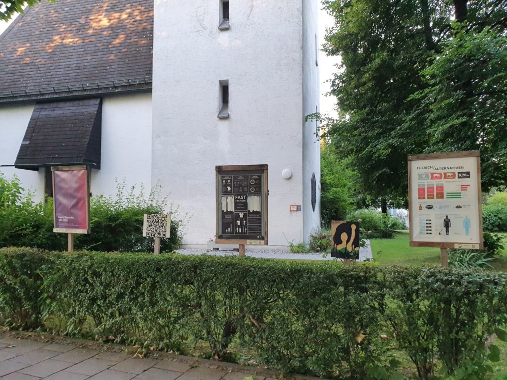 Die Präsentation der Plakate in Dachau ist eine weitere der gemeinsamen Aktionen des kürzlich gegründeten Klima-Netzwerks im Dachauer Land. Etwa vierzig Initiativen, Vereine, Verbände, Institute, Läden, Bildungseinrichtungen sowie zahlreiche engagierte „Einzelkämpfer:innen“ haben sich im Klima-Netzwerk zum gemeinsamen ganz konkreten und umgesetzten Klimaschutz zusammengefunden. Nun laden die People For Future Dachau (P4F) und die Gnadenkirche Dachau die Öffentlichkeit ein, die großformatigen Plakate rund um die von Grün umgebene Gnadenkirche zu erkunden. Freundliche Unterstützung von Aktionen der P4F und der FFF Dachau durch die Gnadenkirchen-Gemeinde hatte es in der Vergangenheit schon mehrfach gegeben, so zum Beispiel in Form eines Benefiz-Konzertes und einer „Baum-Demo“ während der Hochphase der Corona-Pandemie.