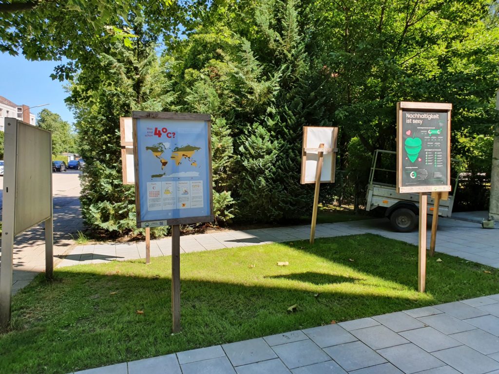 Studierende haben im Rahmen einer Studienarbeit zum »User Experience Design« der Technischen Hochschule Ingolstadt unter Leitung von Prof. Ingrid Stahl die Plakate entwickelt. Selten gab es so pointierte und dabei differenzierte Darstellungen in diesem Bereich. Die Nachhaltigkeitsgruppe von Plan A Altomünster hatte erreicht, dass die Plakat-Ausstellung prominent und unübersehbar auf Gemeindegebiet mitten in Altomünster gezeigt werden durfte, bevor sie dann bei der Schule in Erdweg im Rahmen eine Schülerprojekts Aufstellung fanden. Der KlimaWandelWeg wurde so mittlerweile zu einer Art Wanderausstellung, deren aktueller Standort nun Dachau ist.
